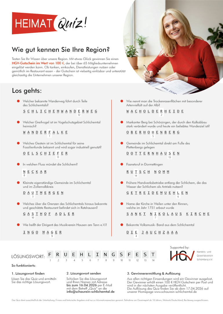 Das Heimat-Quiz der Ausgabe 56 erfreute sich großer Beliebtheit – wir haben zahlreiche Einsendungen erhalten. Vielen Dank an alle Leserinnen und Leser für die rege Teilnahme!